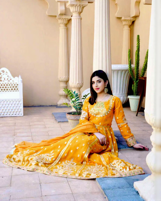 Royal Mustard Gold Zari Anarkali Gown Set