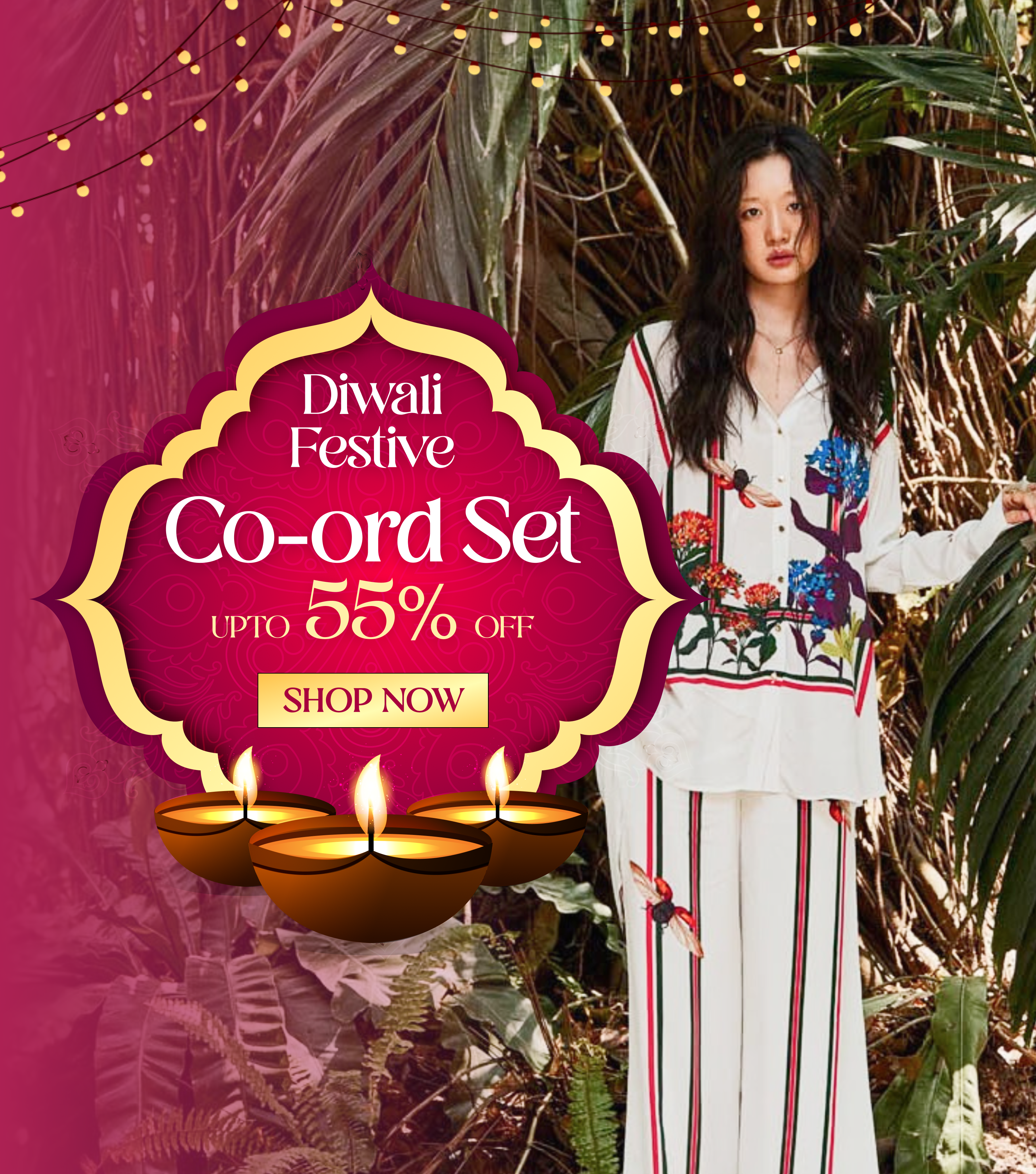 Regular price Rs. 1,379.00Regular priceUnit price / perRs. 2,499.00Sale price Rs. 1,379.00Turn heads effortlessly with Rakul Preet's Butterfly Lane Co-ord Set, a dreamy fusion of elegance and charm. This refreshing set features delicate butterfly and floral prints intertwined with bold stripes on a crisp white base, giving you the perfect mix of grace and contemporary flair. Designed for the modern woman who loves subtle statement pieces, this co-ord includes a breezy shirt and matching pants—ideal for day outs or relaxed evenings.