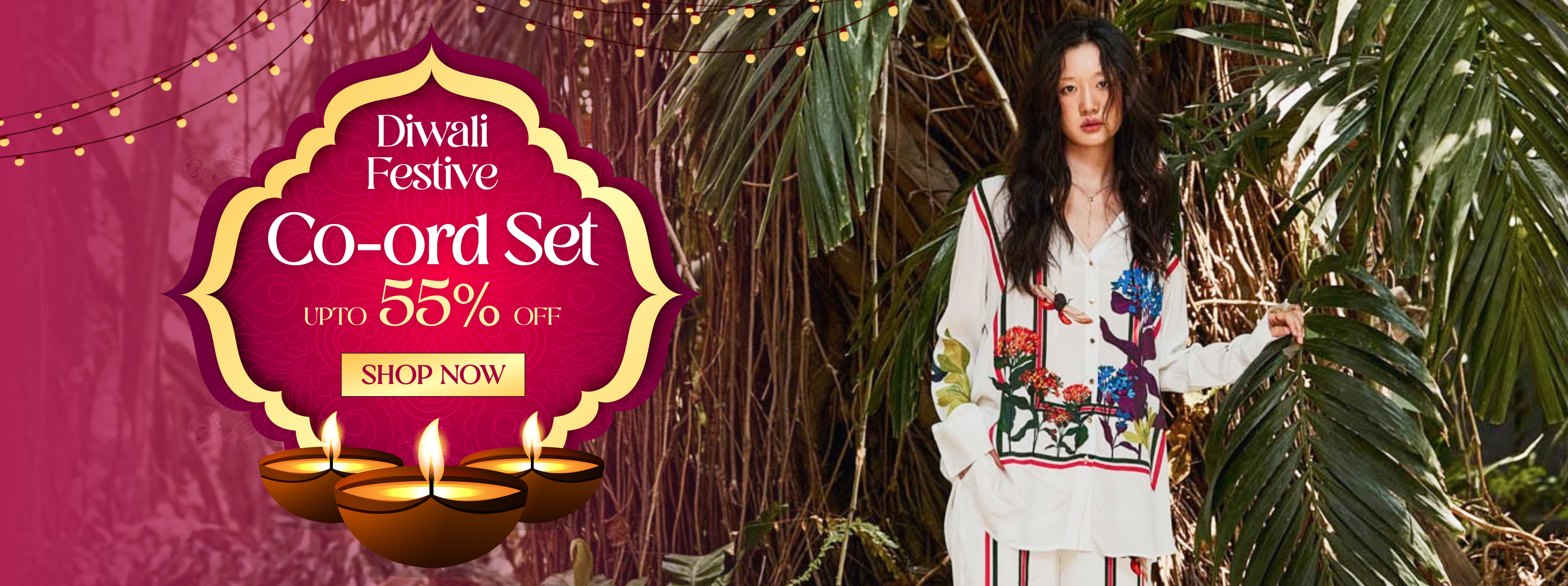 Regular price Rs. 1,279.00Regular priceUnit price / perRs. 2,699.00Sale price Rs. 1,279.00Bring effortless glam to your wardrobe with Nora Fatehi's Flower Co-ord Set, crafted for those who seek a blend of sophistication and comfort. This stunning set features a vibrant floral design, enhanced by sleek black piping along the side pockets on the shirt, adding a bold contrast. The set includes a matching shirt and pants, making it perfect for both casual and stylish occasions.