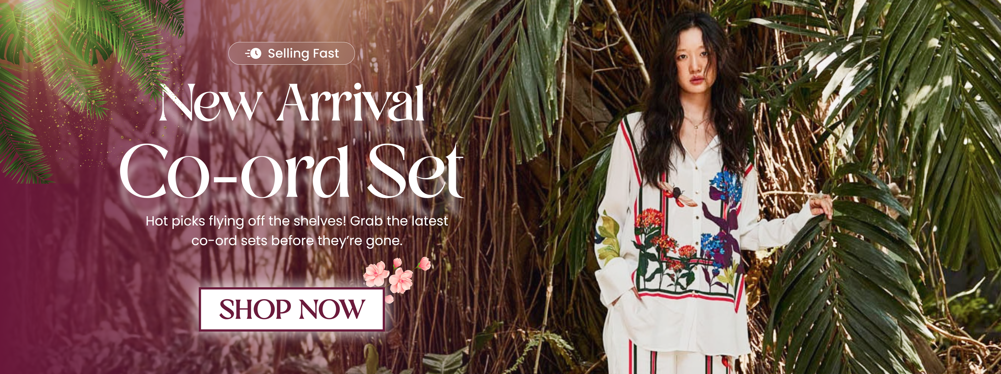 Regular price Rs. 1,299.00Regular priceUnit price / perRs. 2,699.00Sale price Rs. 1,299.00Bring effortless glam to your wardrobe with Nora Fatehi's Flower Co-ord Set, crafted for those who seek a blend of sophistication and comfort. This stunning set features a vibrant floral design, enhanced by sleek black piping along the side pockets on the shirt, adding a bold contrast. The set includes a matching shirt and pants, making it perfect for both casual and stylish occasions.