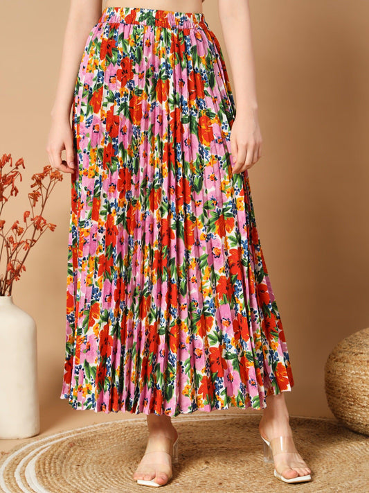 Vibrant Floral Printed Long Skirt Versatile for Every Occasion