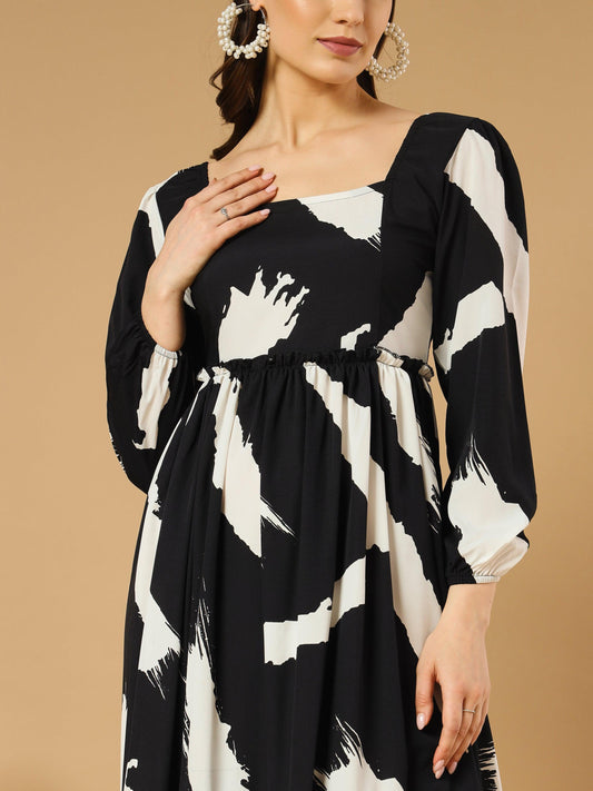 Brushstroke A-line Dress Square Neck With Smocked Style